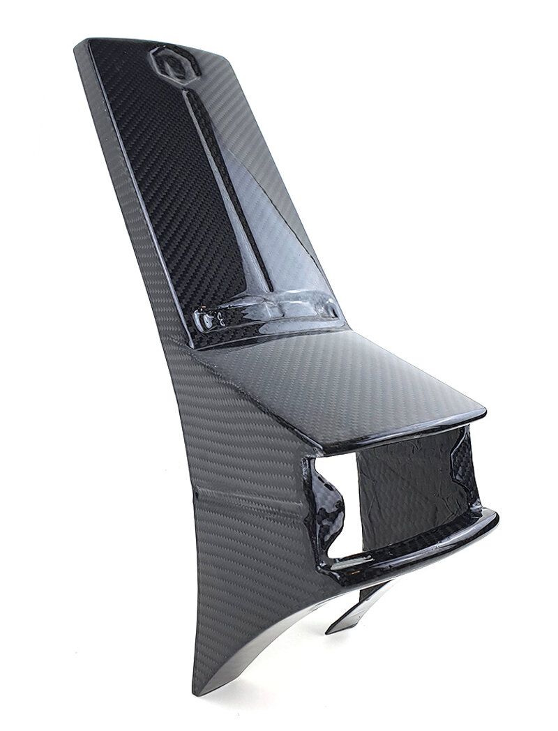 Realizzata in fibra di carbonio di alta qualità, offre una finitura lucida (od opaca a scelta del cliente) conferita da 3 strati di trasparente anti UV.