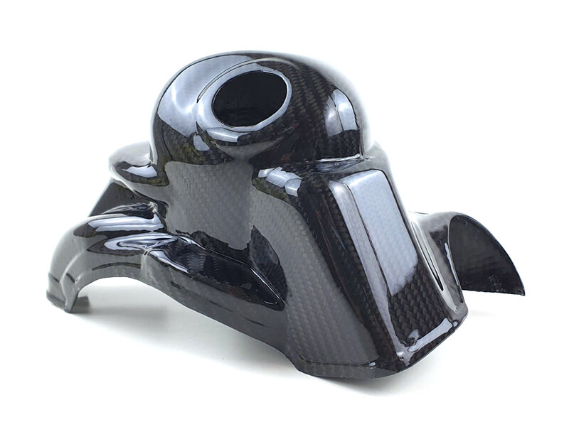 Realizzata in fibra di carbonio di alta qualità, offre una finitura lucida (od opaca a scelta del cliente) conferita da 3 strati di trasparente anti UV.